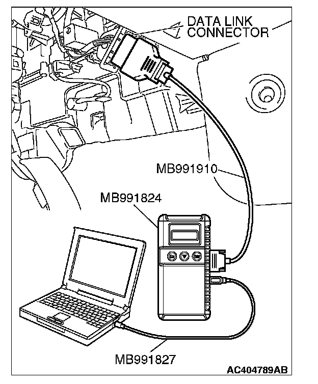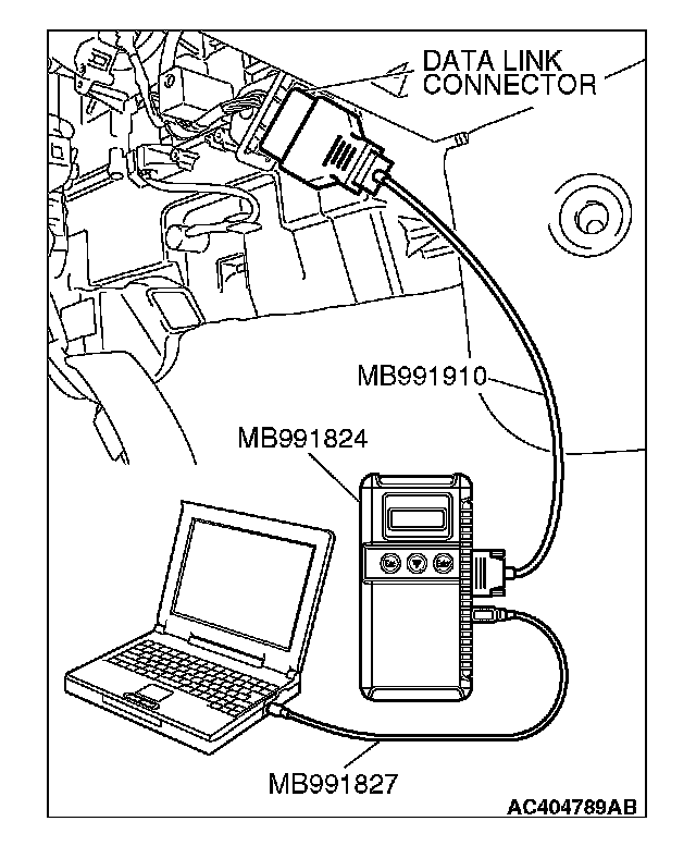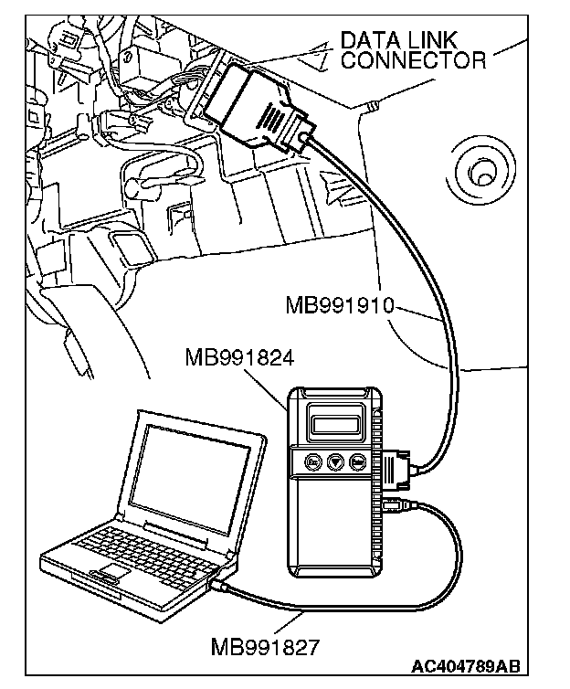1. Connect scan tool MB991958 to the data link connector.