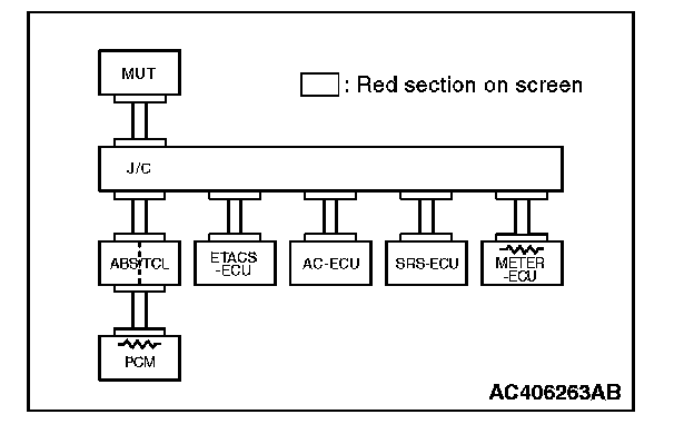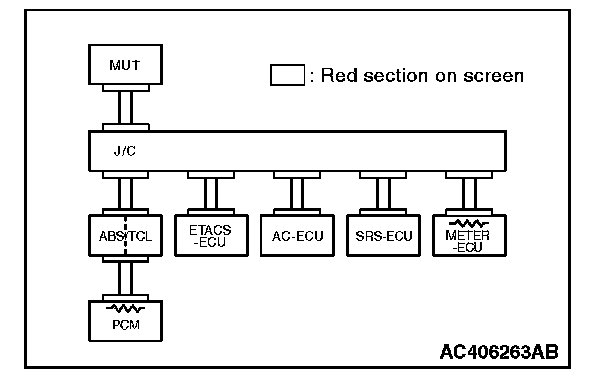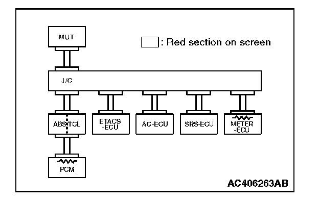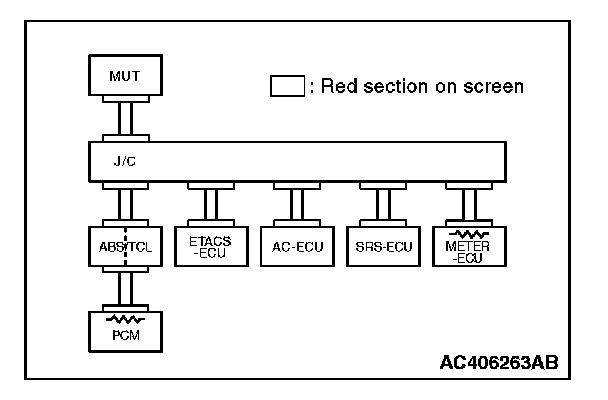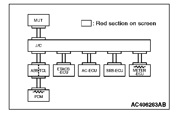 3. Diagnose CAN bus lines, and check if scan tool MB991958 screen is as shown in the illustration.