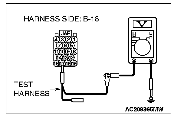 4. Measure the voltage between joint connector (3) terminal 18 (CAN_L) and body ground.