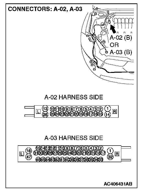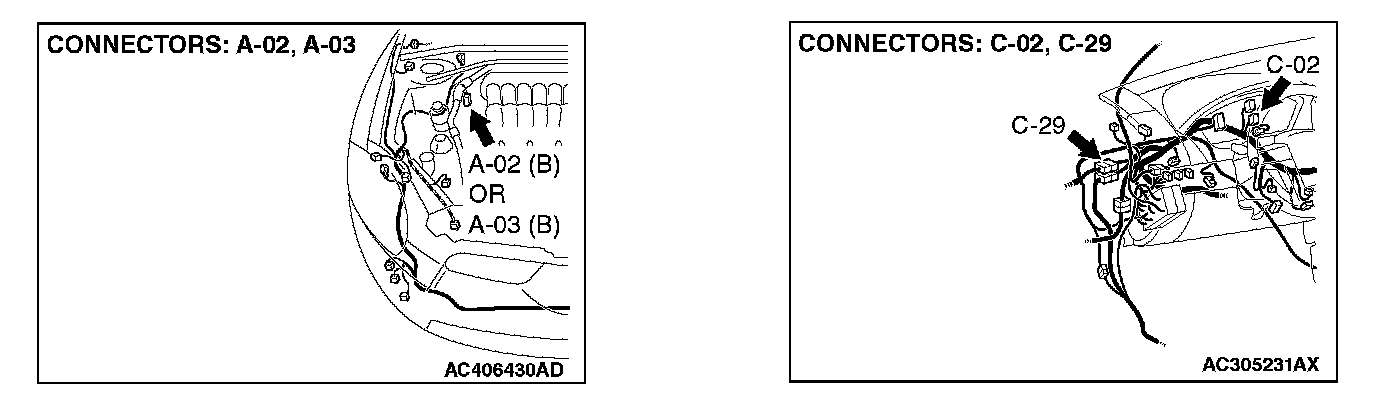 STEP 1. Check joint connector (3) C-03 and ABS-ECU connector A-02