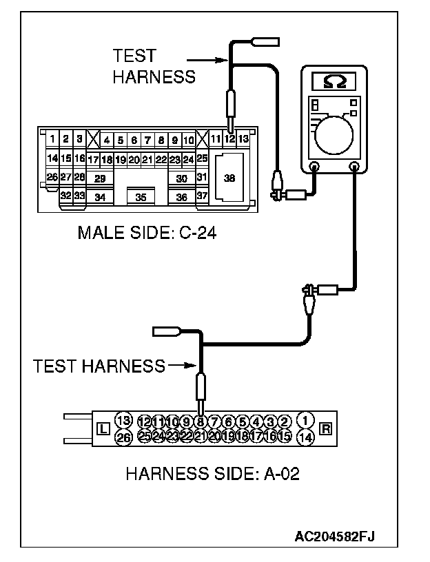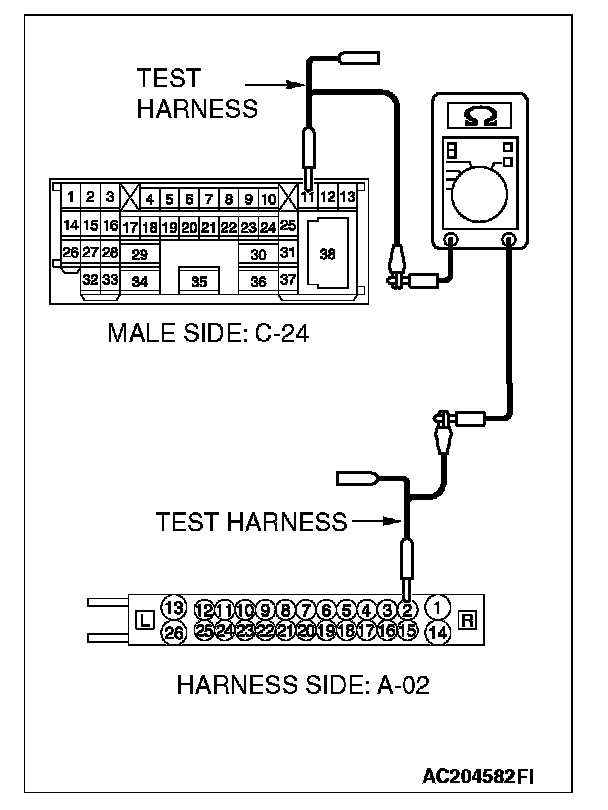 1. Disconnect intermediate connector C-24 and ABS-ECU connector A-02