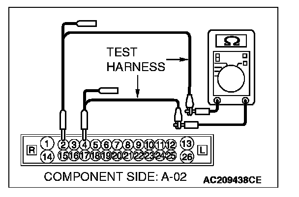 NO: If either of the resistances measures more than 2 ohms or all the resistances measure more than 2 ohms, repair the wiring harness between intermediate connector C-29 and the joint connector (3).