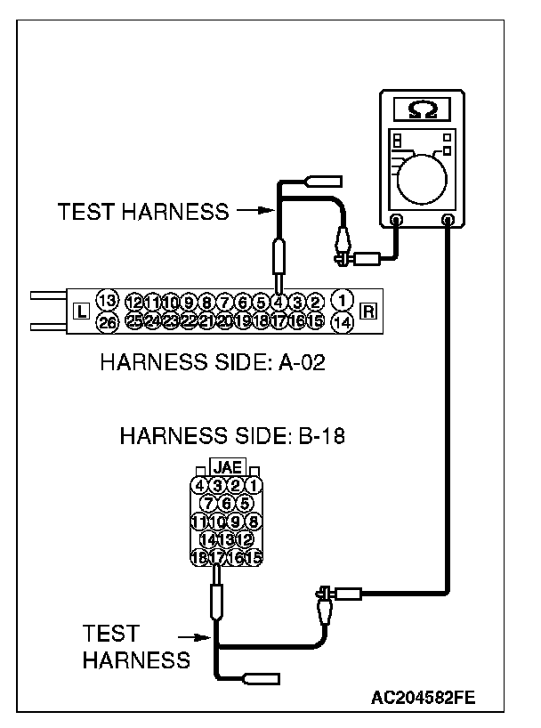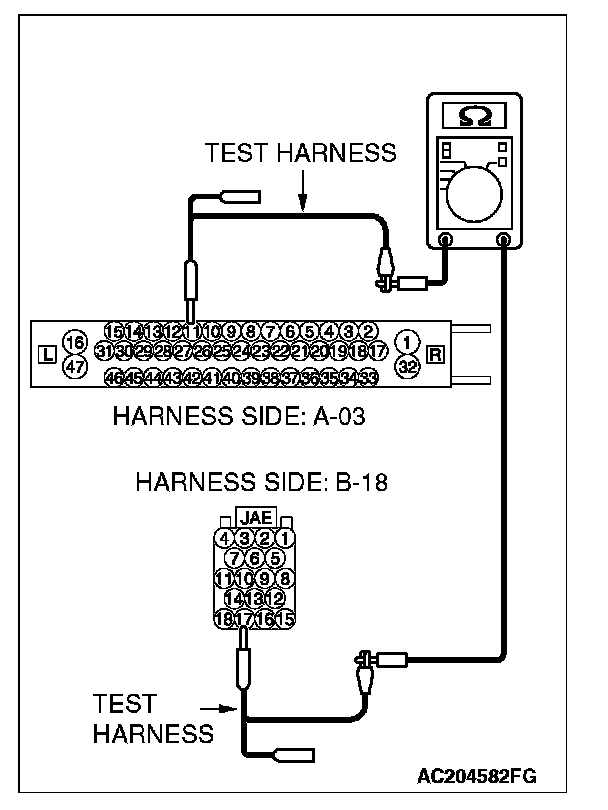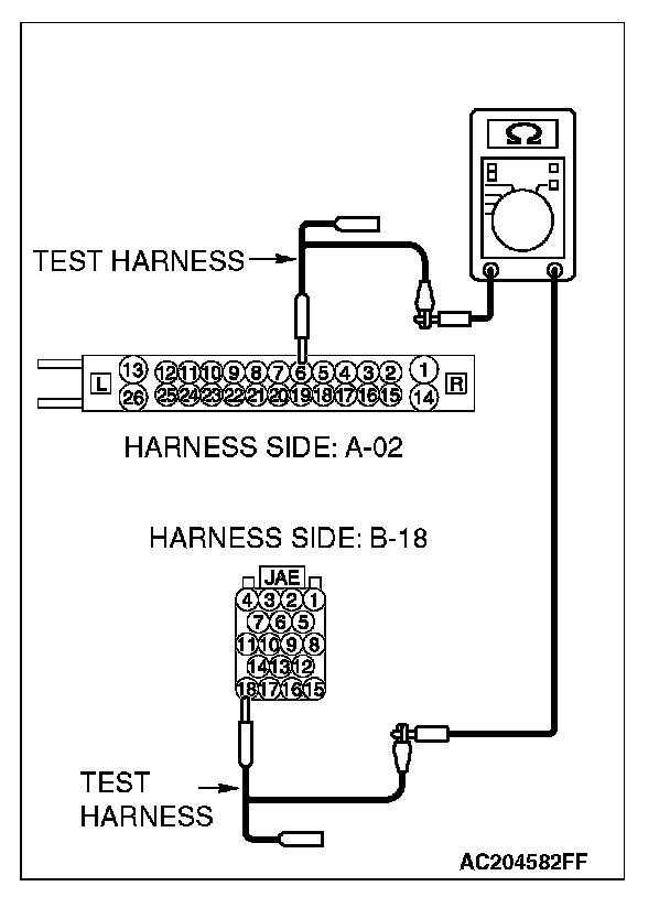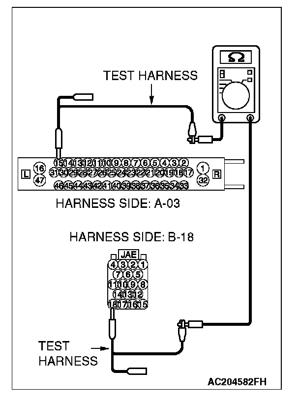 - The test wiring harness should be used.