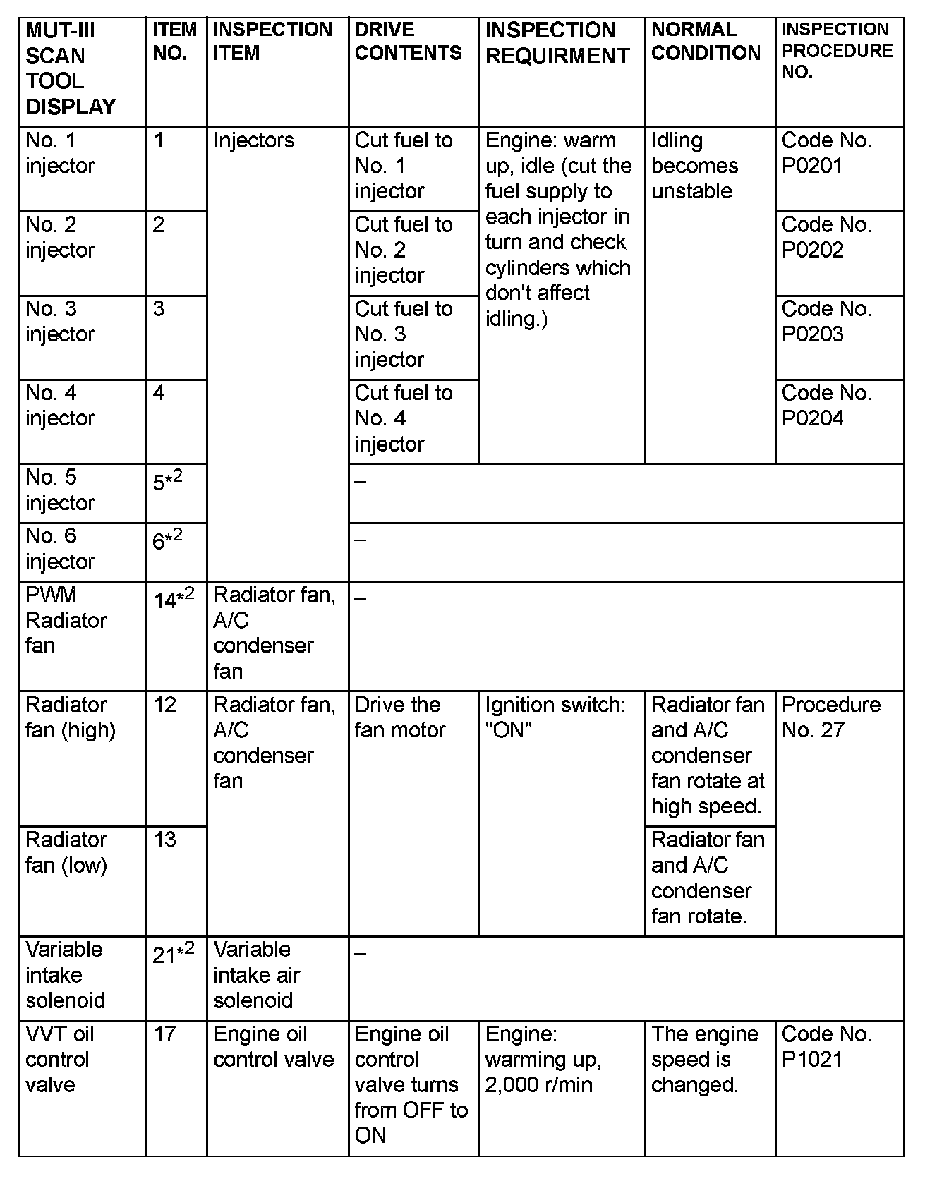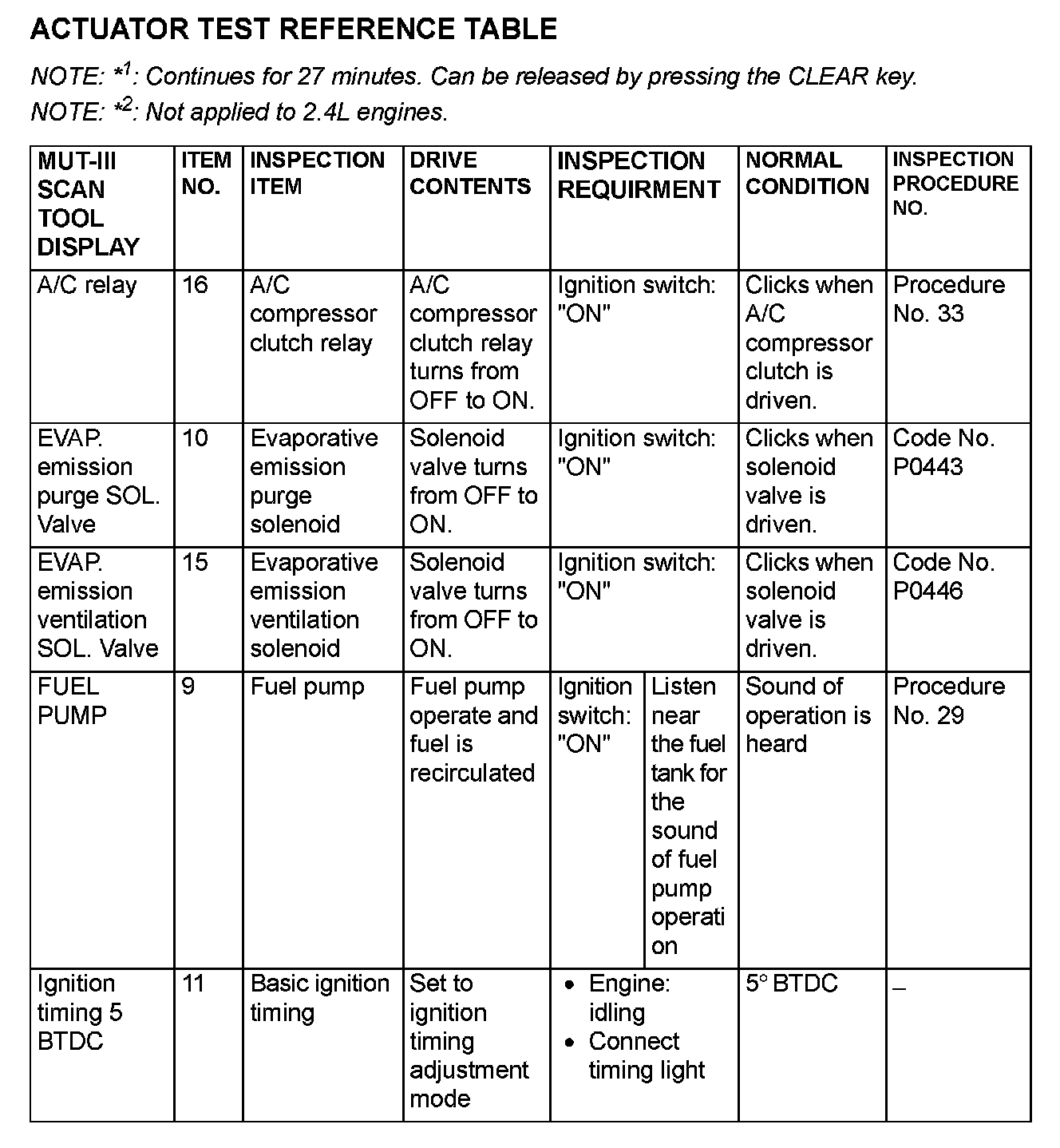 Actuator Test Reference Table Part 2: