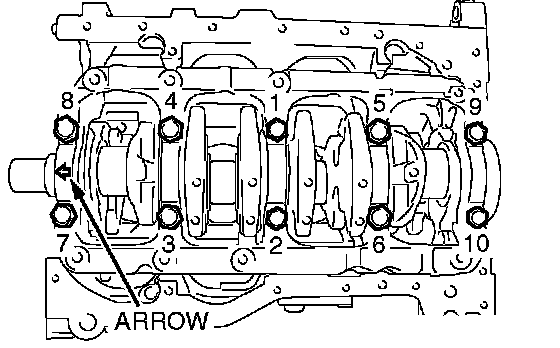 Main Bearing CapTighten the bolts to the specified torque in the tightening sequence shown.