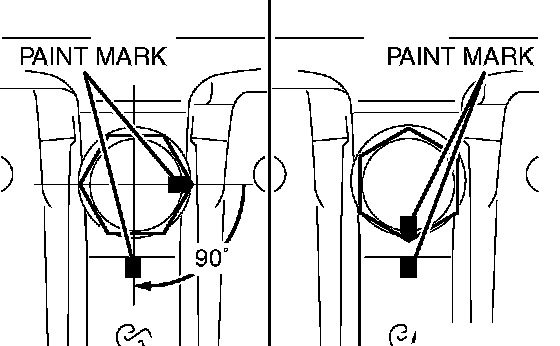 Turn each bolt 90 degrees in the tightening sequence specified in step 4, and make sure that the paint marks on the bolt and cap are aligned.