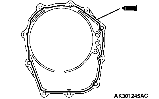 50. Apply a 2 mm (0.08 inch) diameter bead of sealant (Mitsubishi Genuine Part number MD974421 or equivalent) to the illustrated position of the rear cover.