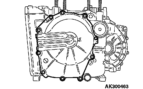 82. Install the torque converter housing and then tighten its mounting bolts (eighteen pieces) to the specified torque.