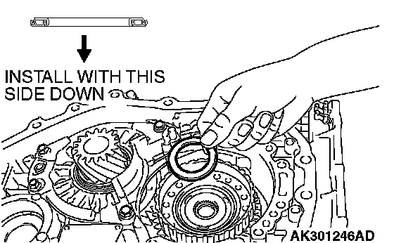 CAUTION: Be sure to install the thrust bearing in the correct direction as shown.