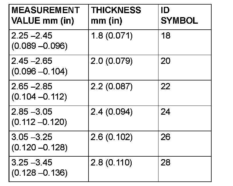 77. Use a micrometer to measure the thickness of the crushed solder beads and record the measured value. Add 0.045 to 0.105 mm (0.0018 to 0.0041 inch)* to the measured value and select a spacer with the corresponding thickness. Select the most suitable one from among those listed.