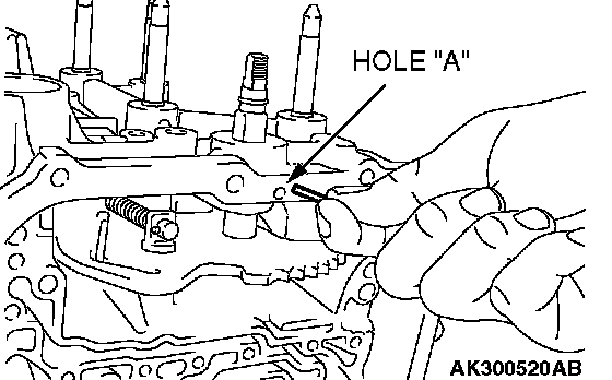 85. Align hole A with the groove in the manual control lever shaft. Insert the manual control lever shaft roller into hole A.