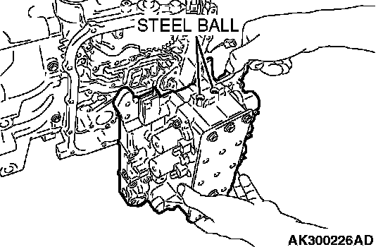 91. Install the steel balls into each of the two holes in the top face of the valve body (outside valve body).