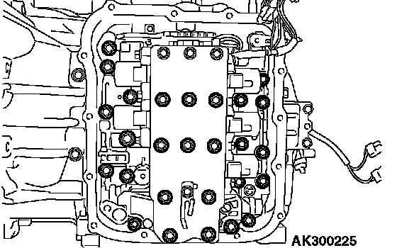 93. Install the valve body mounting bolts (twenty seven pieces), and tighten to the specified torque.