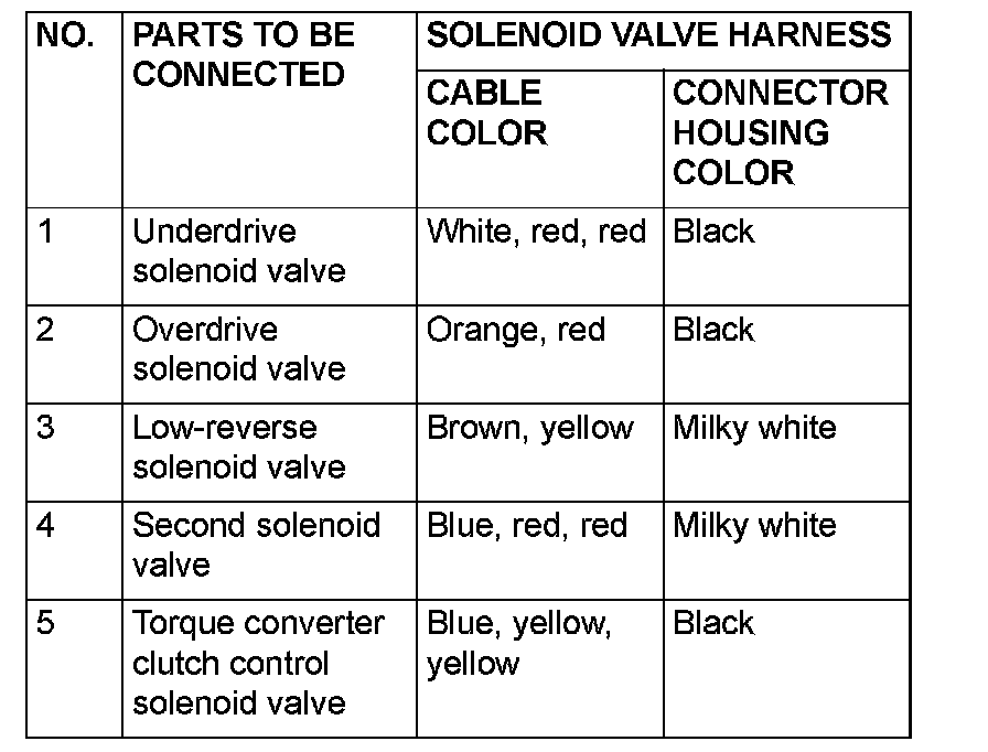 94. Attach the solenoid valve harness to valve body by connecting the all the connectors.
