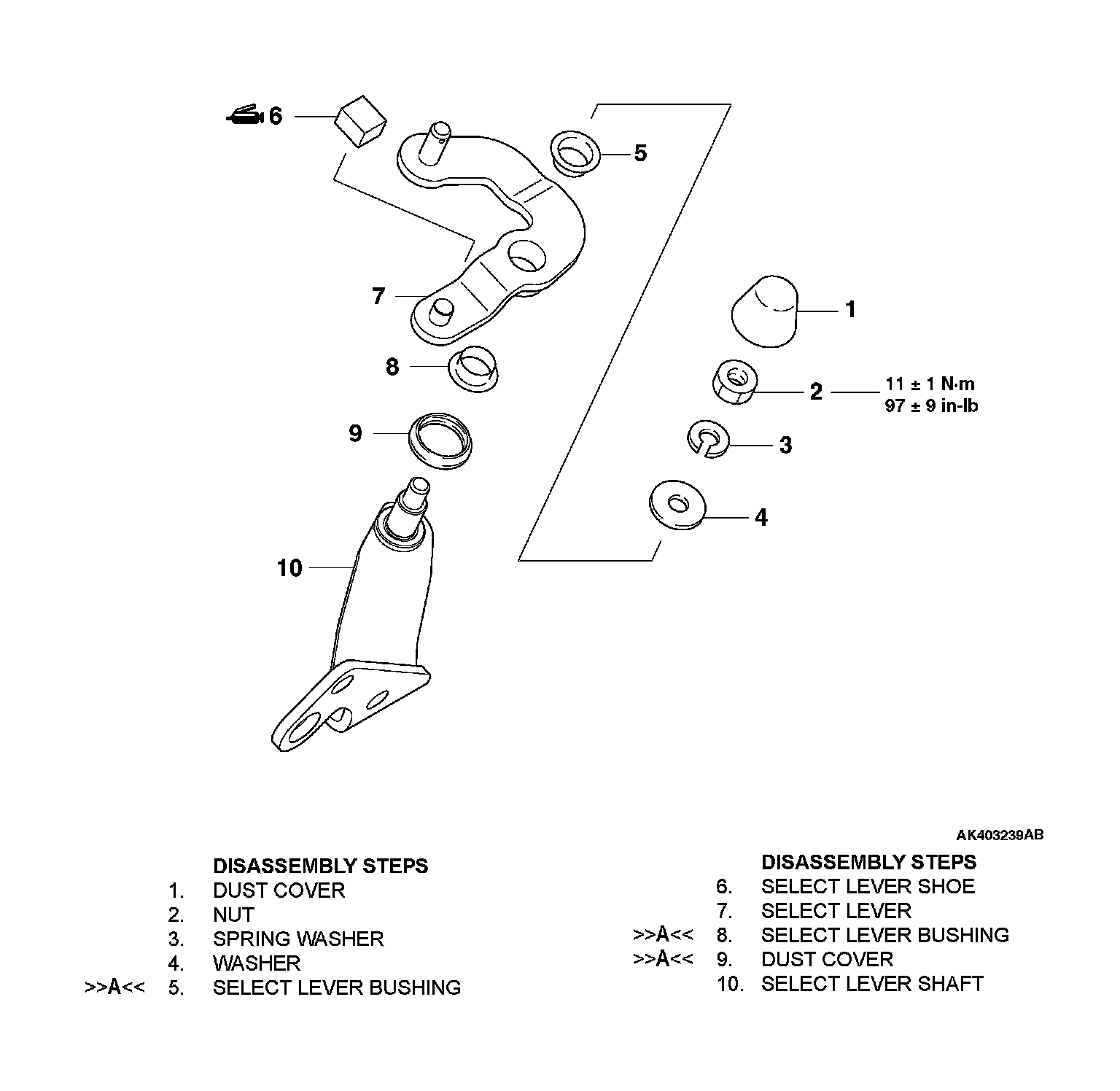 >>A<< DUST COVER AND SELECT LEVER BUSHING INSTALLATION