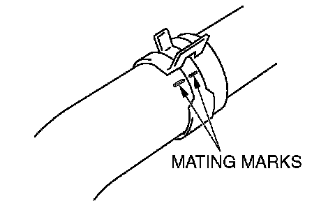 Make mating marks on the radiator hose and the hose clamp. Disconnect the radiator hose.