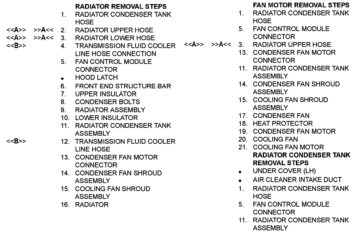 [[A]] RADIATOR UPPER HOSE/RADIATOR LOWER HOSE DISCONNECTION