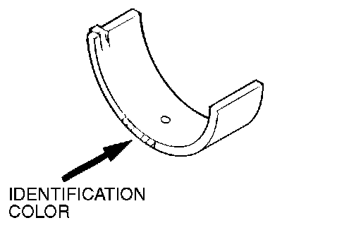 From the above table, select a bearing whose size is appropriate for the crankshaft pin outside the diameter. For example, if the crankshaft pin outside diameter Identification color is "yellow" and the connecting rod Identification mark is "2," select a bearing whose Identification color is "green."