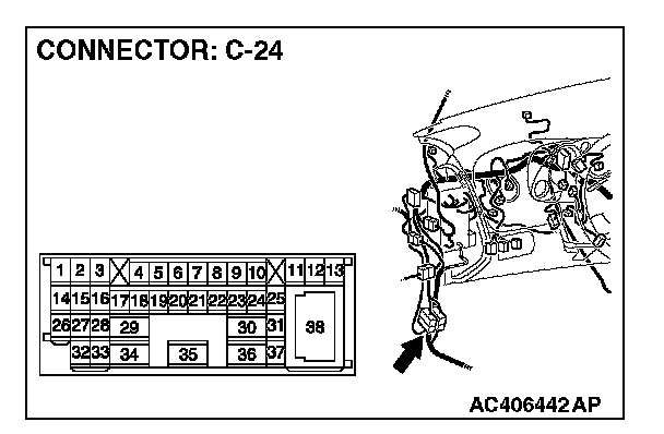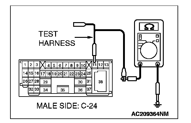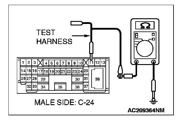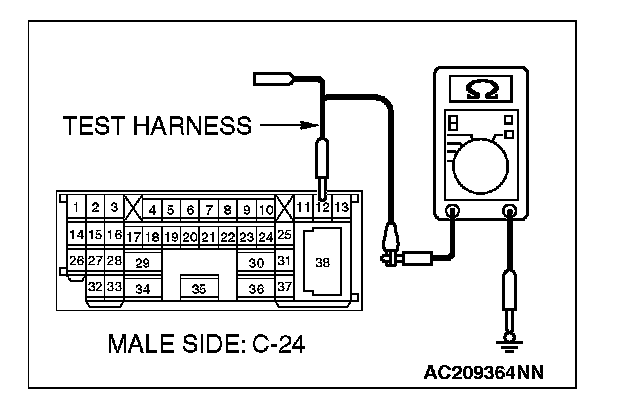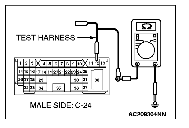 2. Disconnect intermediate connector C-24, and measure the resistance at the male side (at front wiring harness side).