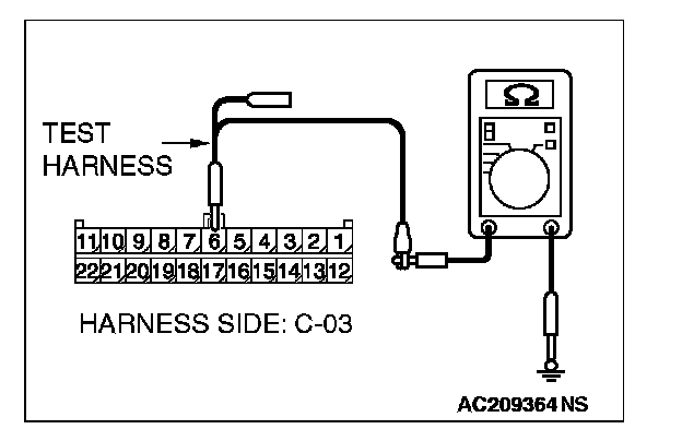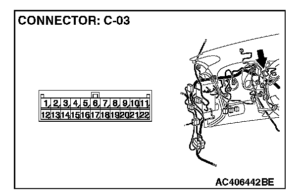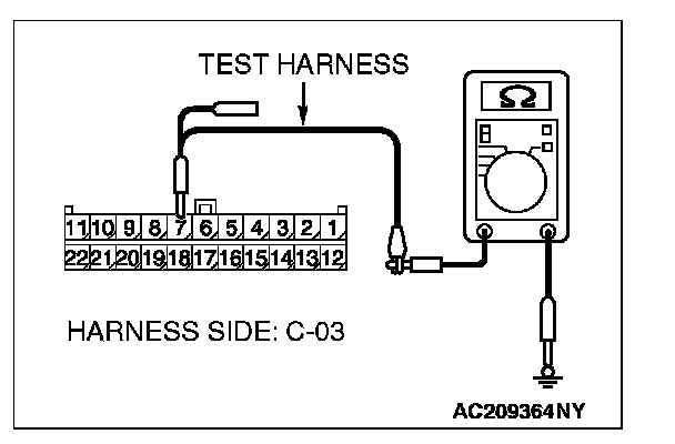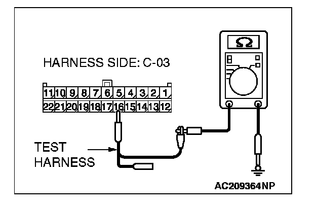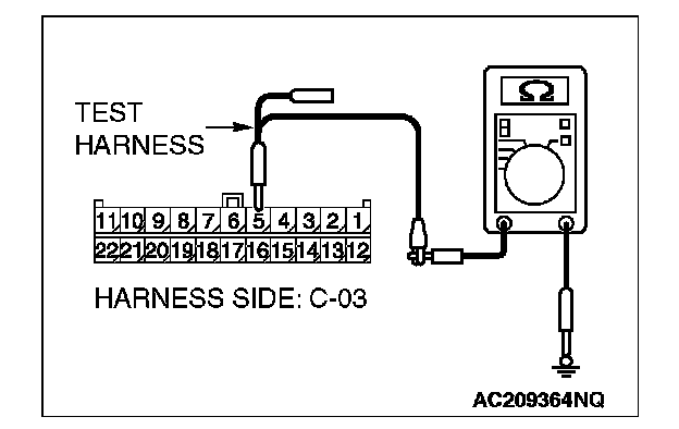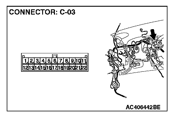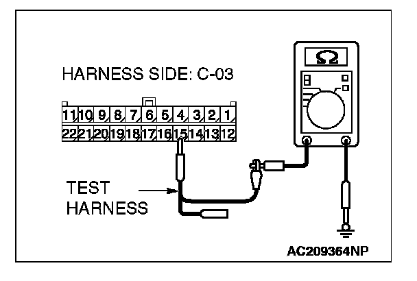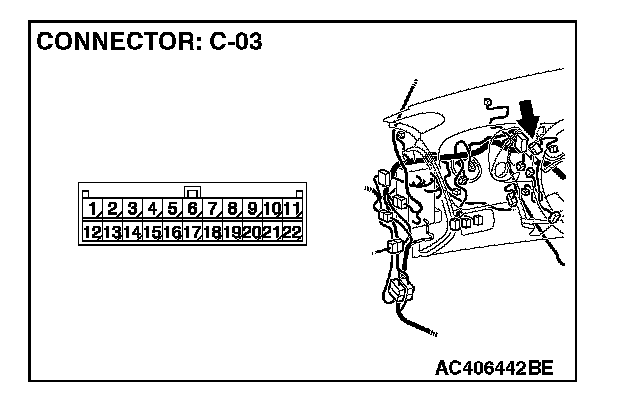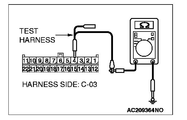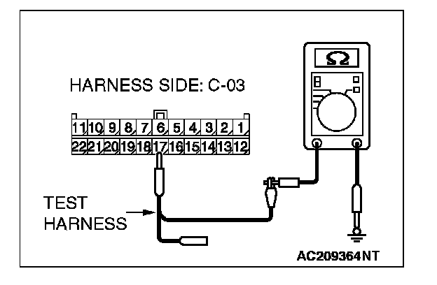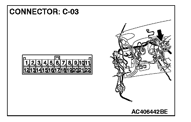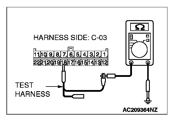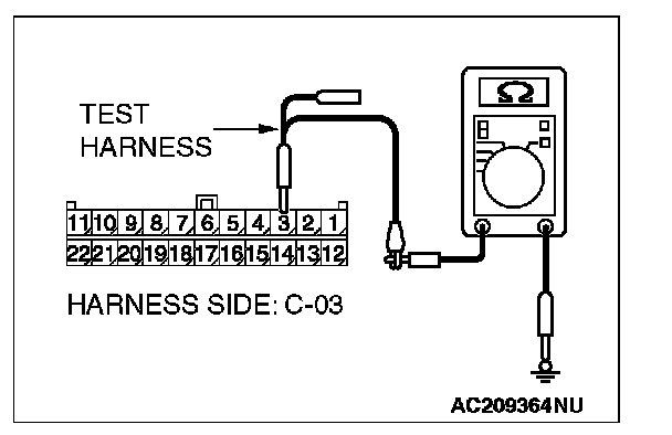 2. Disconnect joint connector (3) C-03, and measure the resistance at the wiring harness side of joint connector (3) C-03.