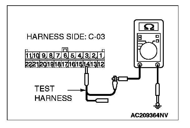 4. Measure the resistance between joint connector (3) terminal 14 and body ground.