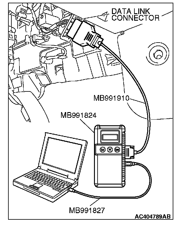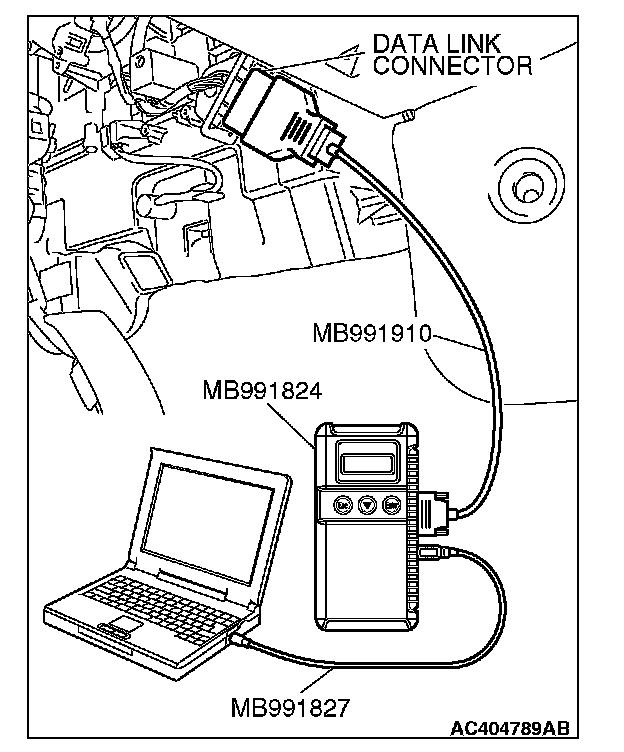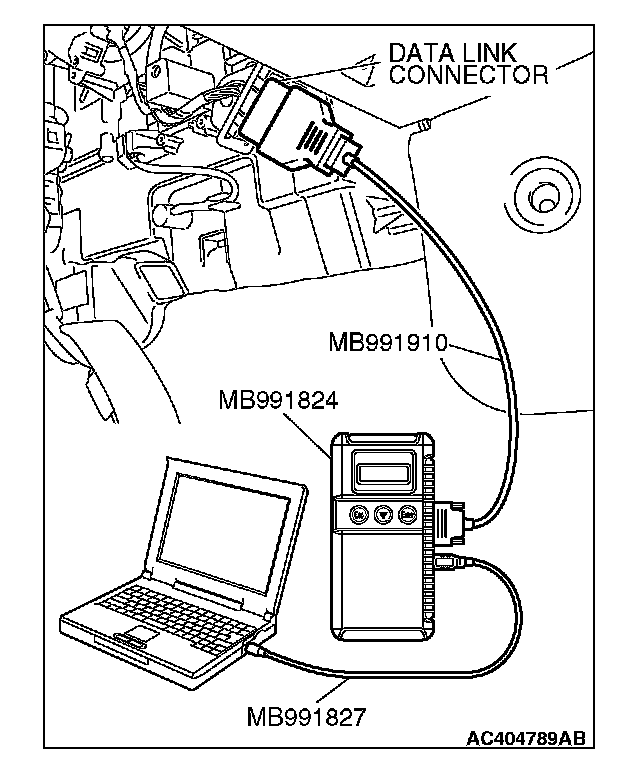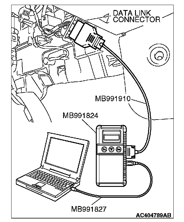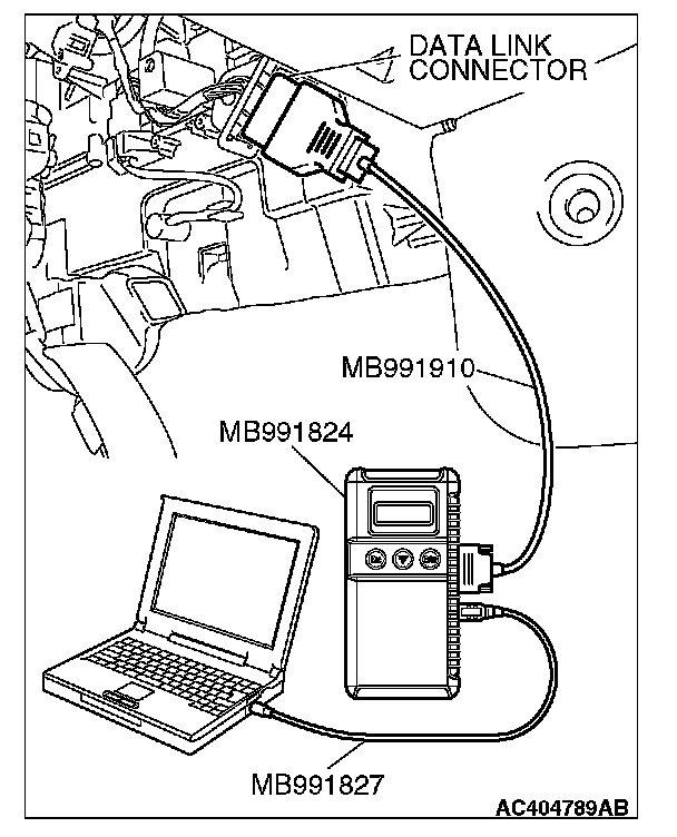 1. Connect scan tool MB991958 to the data link connector.