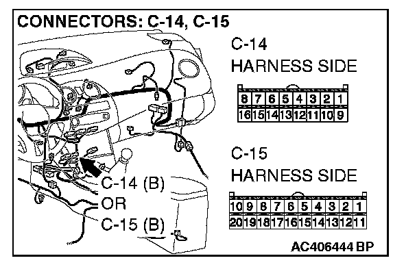 1. Disconnect A/C-ECU connector C-14