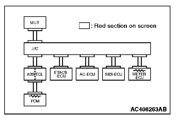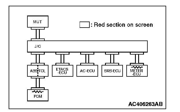 3. Diagnose CAN bus lines, and check if scan tool MB991958 screen is as shown in the illustration.