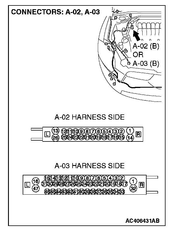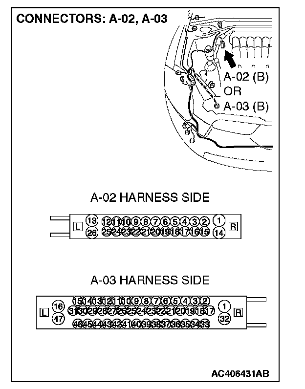 2. Disconnect intermediate connector C-24 and ABS-ECU connector A-02