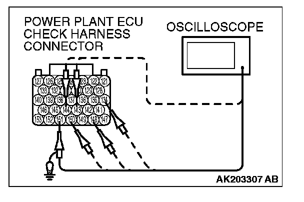 2. Connect the oscilloscope probe to each check harness connector terminal to analyze each cylinder: