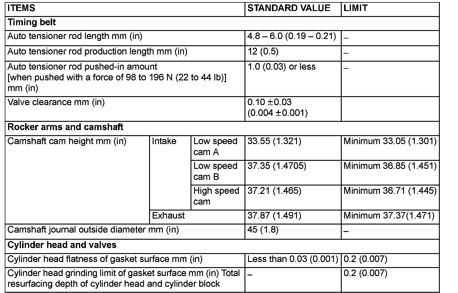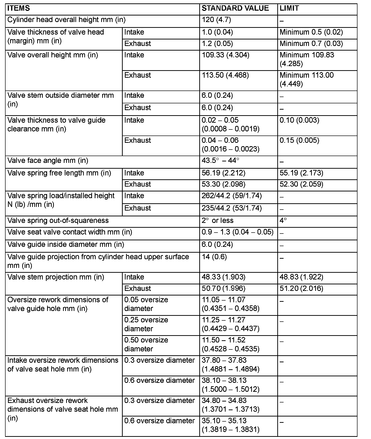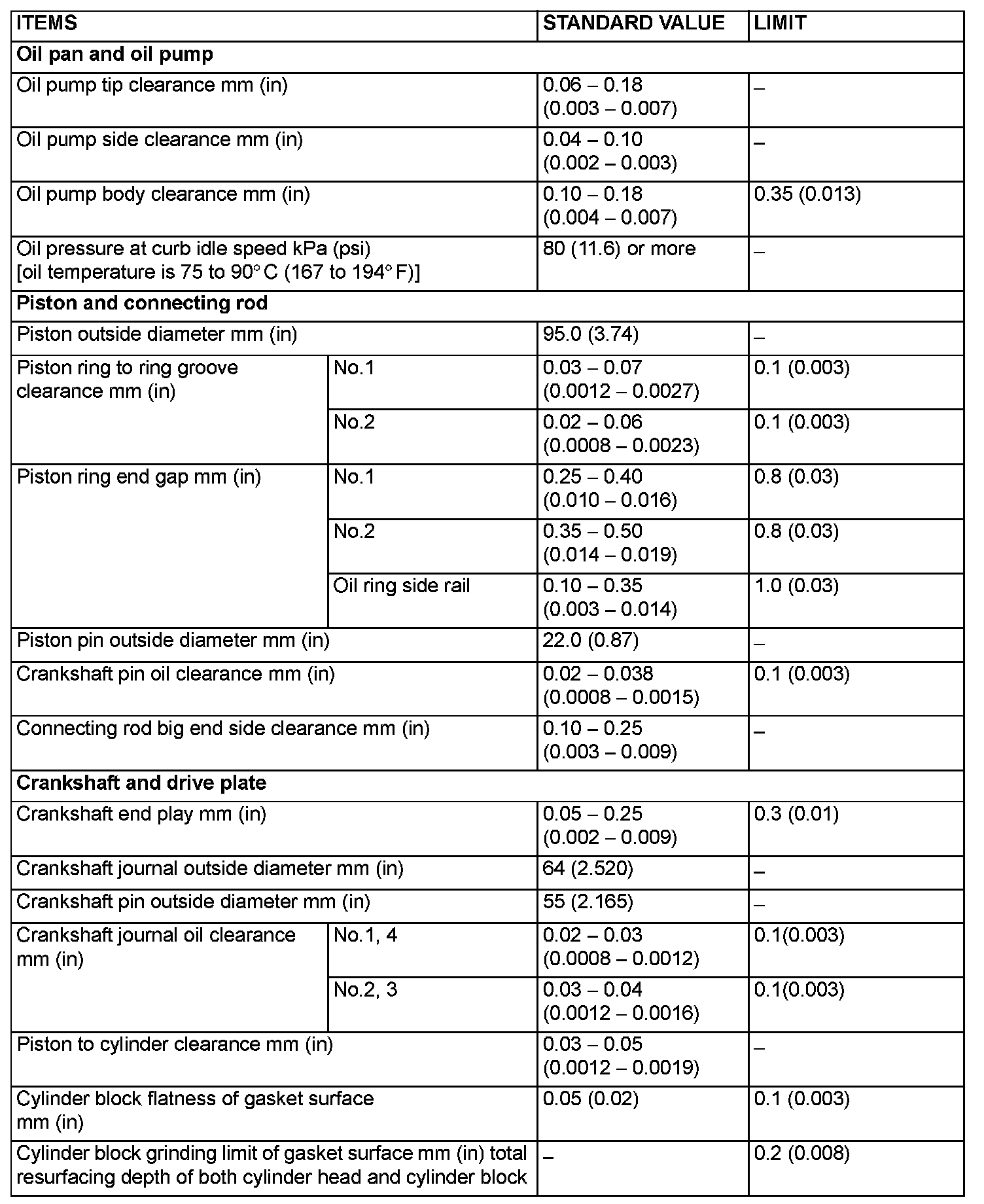 SERVICE SPECIFICATIONS (Updated Per TSB# 06-11-006):