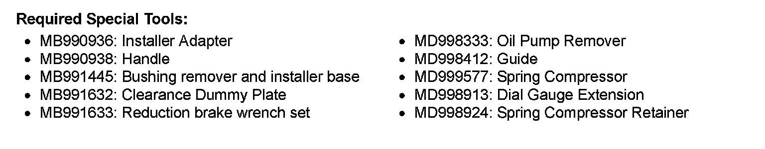64. Using special tools MD998333, remove the oil pump and the crushed solders.