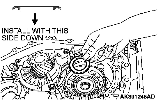 CAUTION: Be sure to install the thrust bearing in the correct direction as shown.