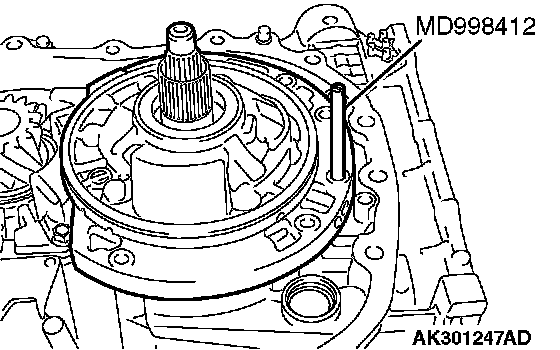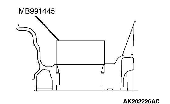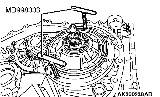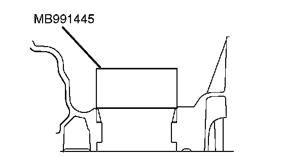 76. Use special tools MB991445 to press the differential bearing outer race into the torque converter housing.