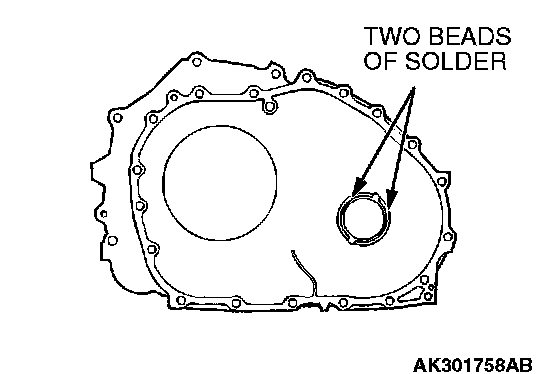 75. Place two beads of solder [each 10 mm (0.39 inch) in length, 3 mm (0.12 inch) in diameter] on the torque converter housing as shown in the illustration.