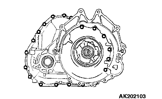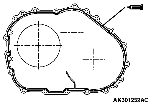 82. Apply a 2 mm (0.08 inch) diameter bead of sealant (MITSUBISHI Genuine Part number MD974421 or equivalent) to the torque converter housing in the area shown.