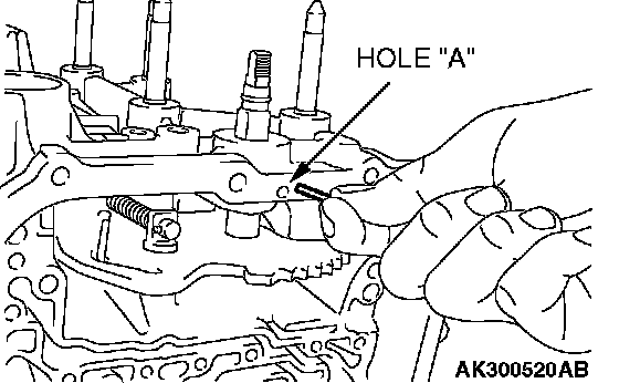 87. Align hole A with the groove in the manual control lever shaft. Insert the manual control lever shaft roller into hole A.