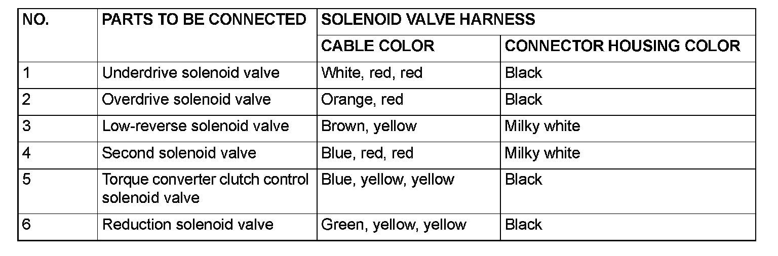 97. Attach the solenoid valve harness to the valve body by connecting all the connectors.