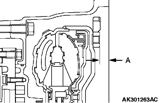 113. Install the torque converter, and align it with the oil pump so that the shown dimension A meets the reference value.