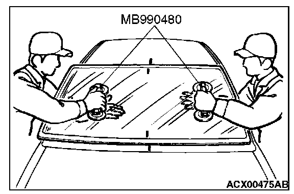 1. When replacing the windshield, temporarily set the windshield against the body, and place a mating mark on the windshield and body.