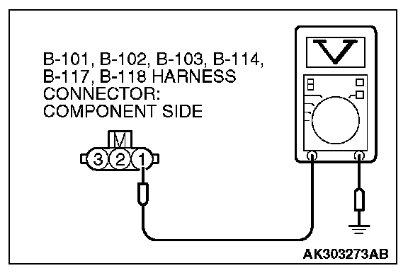 STEP 3. Measure the power supply voltage at ignition coil connectors B-101, B-102, B-103, B-114, B-117, B-118.
