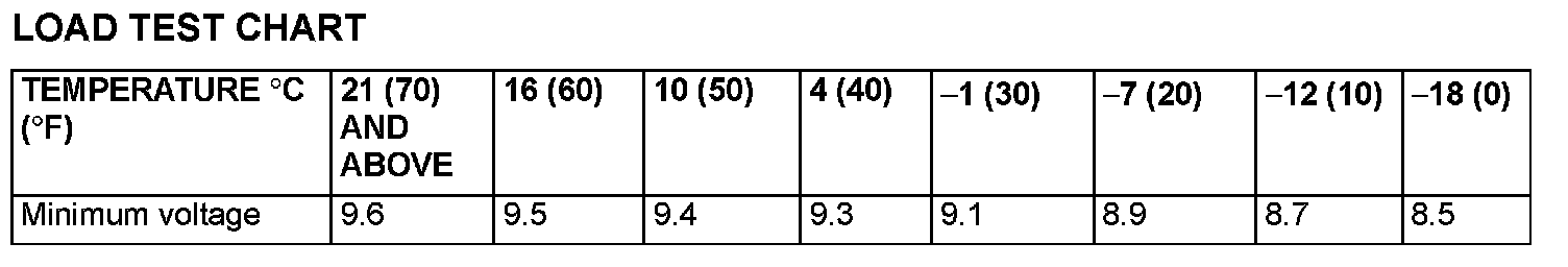 4. Compare the measured value with the minimum voltage (See LOAD TEST CHART)