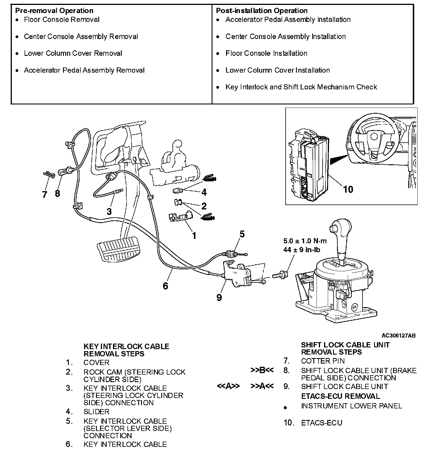 <> SHIFT LOCK CABLE UNIT REMOVAL