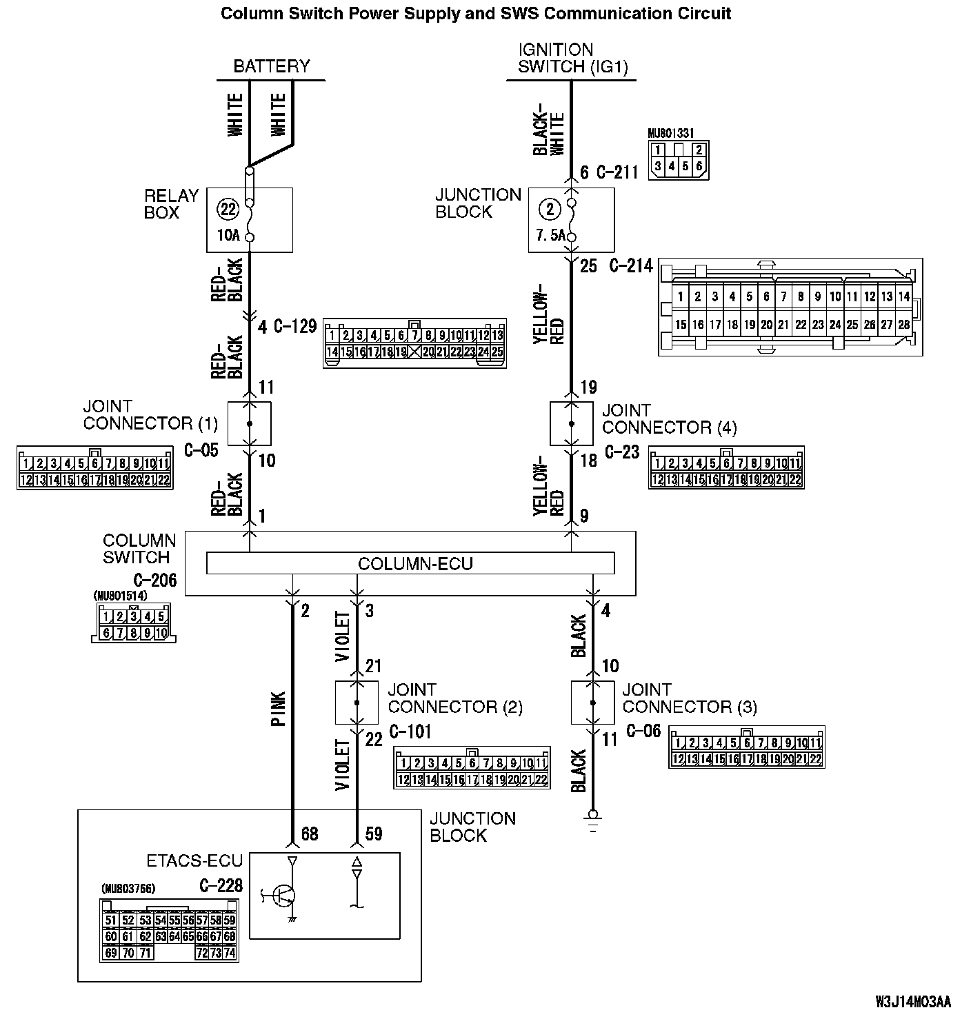- The power supply to the column switch is provided by the battery and the ignition switch (IG1).