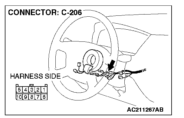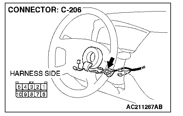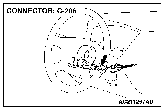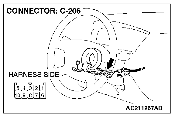 1. Disconnect column switch connector C-206 and measure the resistance available at the harness side of the connector.