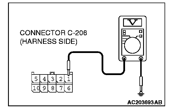 STEP 4. Check the wiring harness between column switch connector C-206 (terminal 1) and the battery.