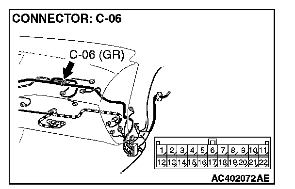 NOTE: Also check joint connector C-06 for loose, corroded, or damaged terminals, or terminals pushed back in the connector. If joint connector C-06 is damaged, repair or replace the damaged components) as described in Harness Connector Inspection.