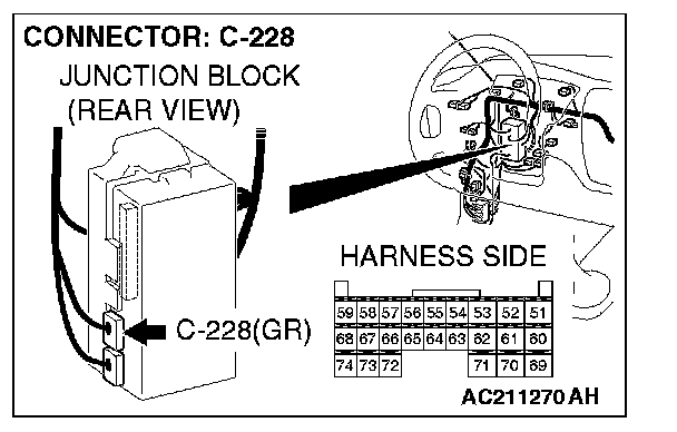 STEP 7. Check ETACS-ECU connector C-228 for loose, corroded or damaged terminals, or terminals pushed back in the connector.