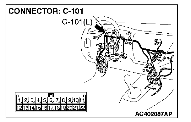 NOTE: Also check joint connector C-101 for loose, corroded, or damaged terminals, or terminals pushed back in the connector. If joint connector C-101 is damaged, repair or replace the damaged components) as described in Harness Connector Inspection.