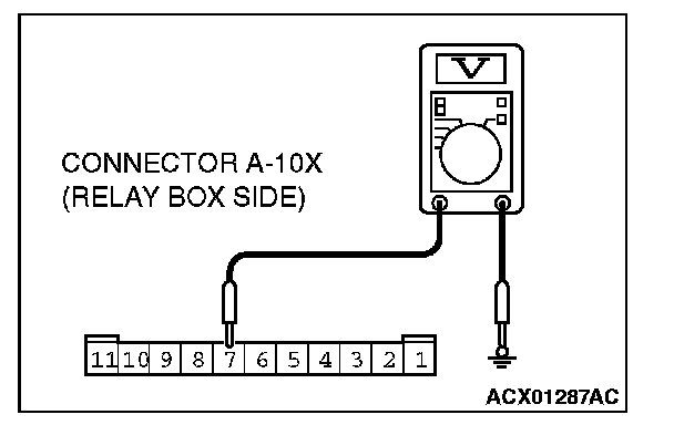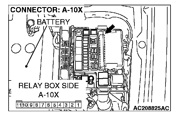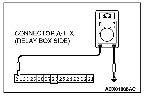 1. Disconnect front-ECU connector A-11X and measure the resistance available at the relay box side of the connector.
